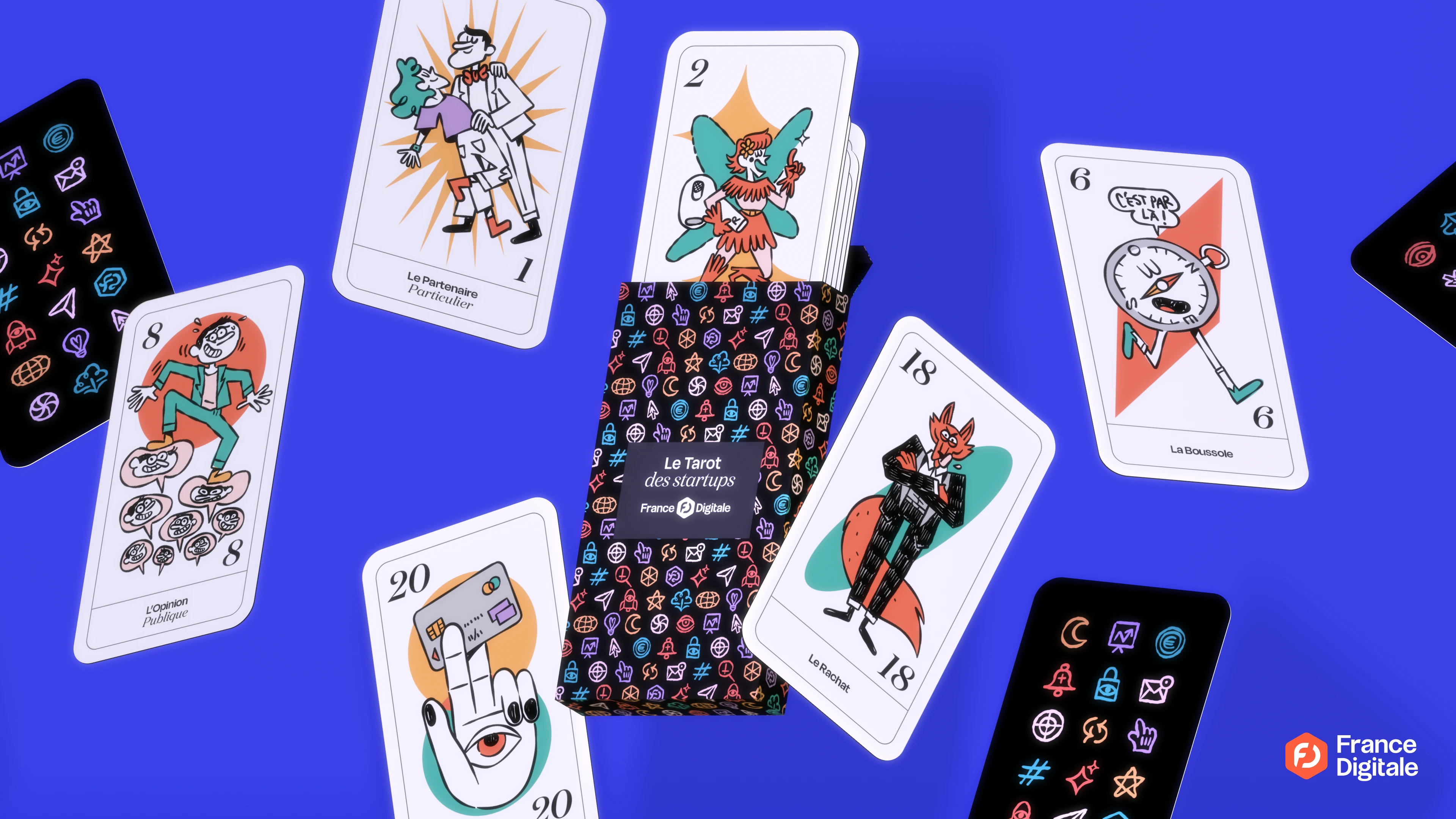 En collaboration avec Kéliane Martenon, nous avons proposé un jeu de tarot complet pour les vœux de France Digitale.