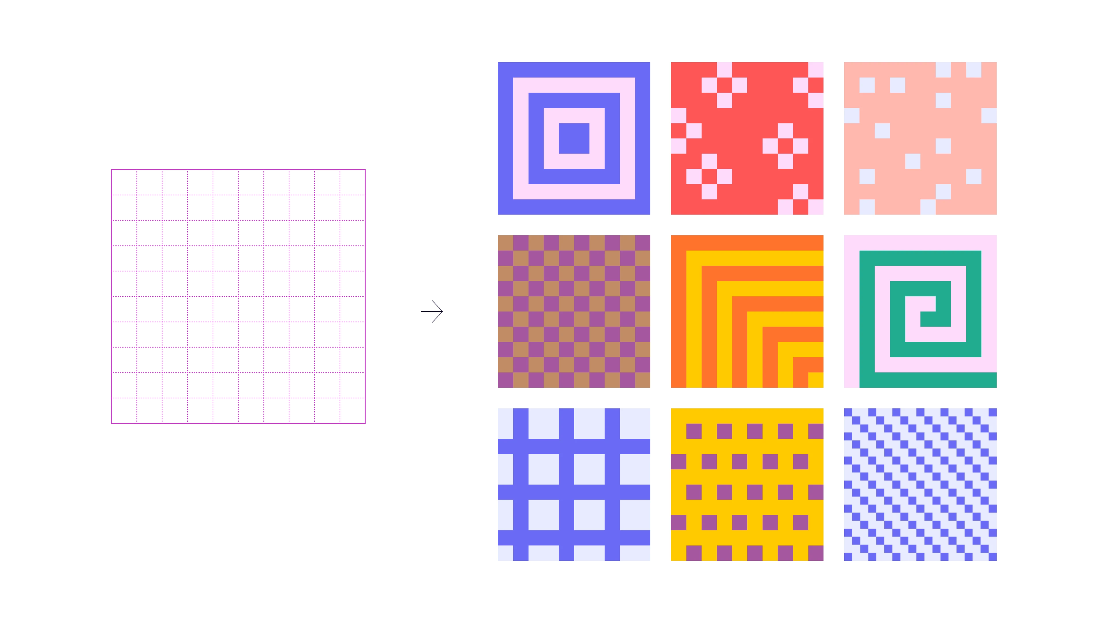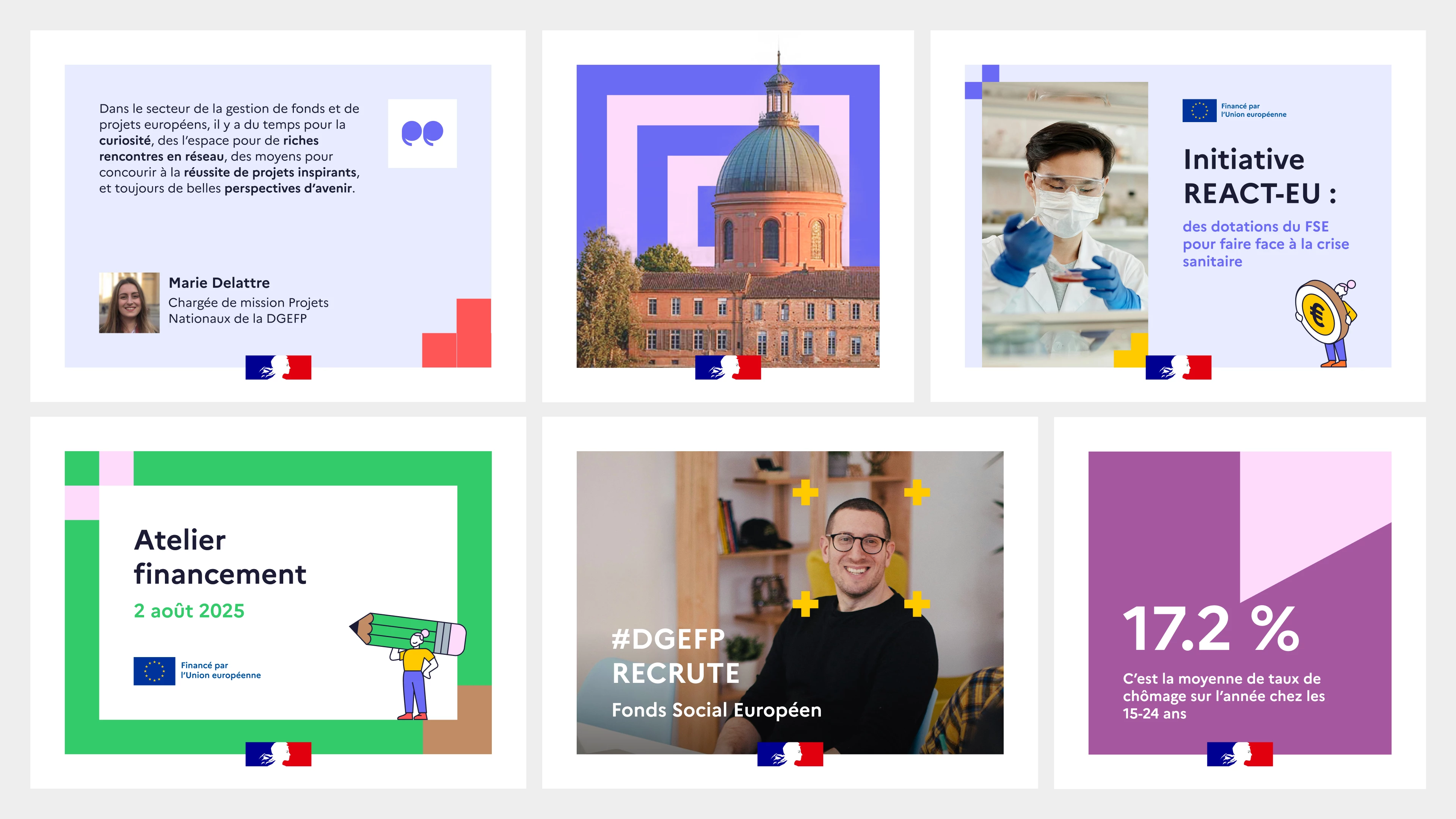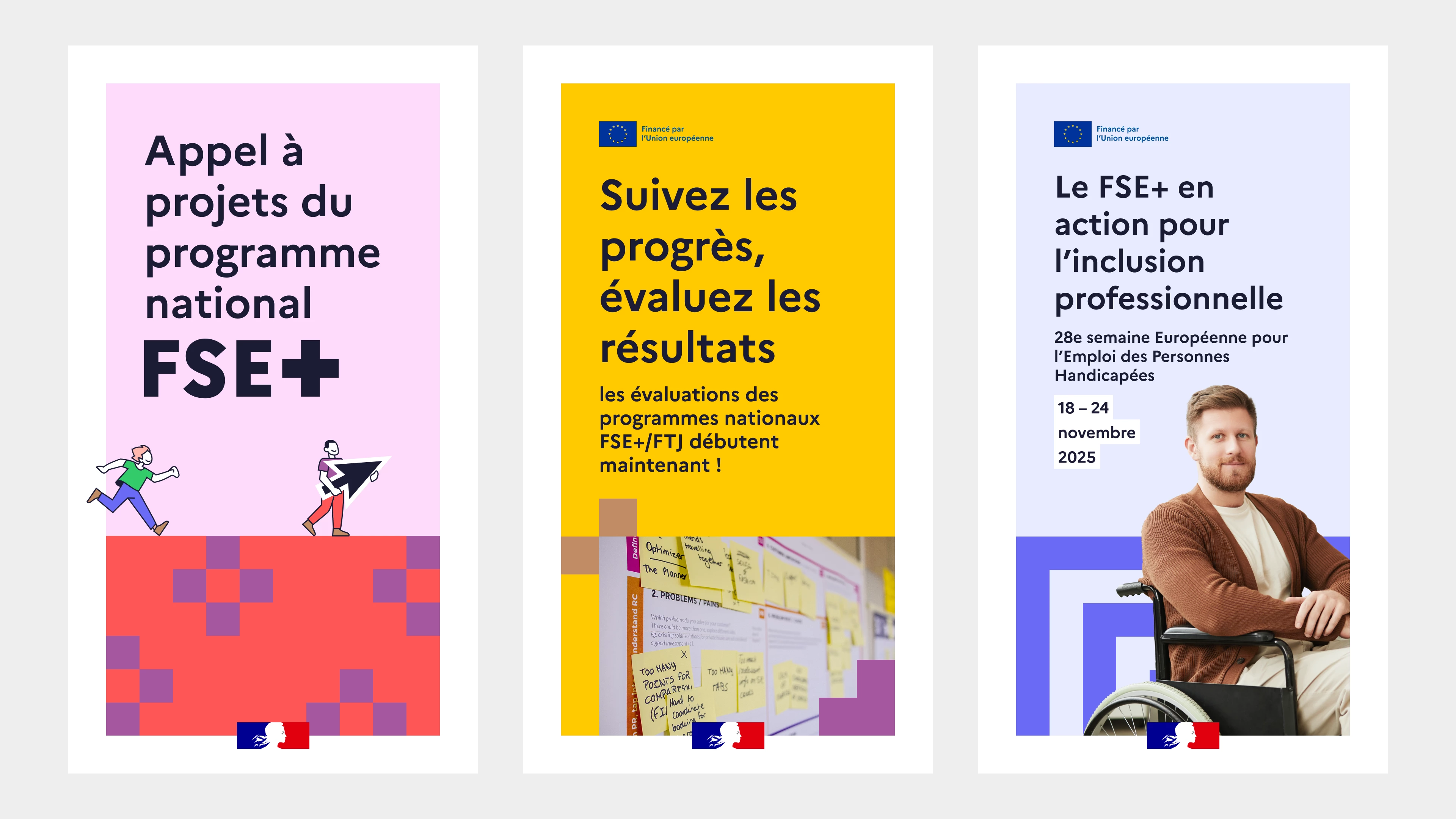 La nouvelle charte s’appuie sur les éléments étatiques : typo Marianne, couleurs, Marie-Louise, etc. On a de la chance avec ce « + » dans le nom, puisqu’il a guidé toute la réflexion iconographique : c’est lui qui définit la grille, les espacements, et nous permet de créer une infinité de motifs abstraits.